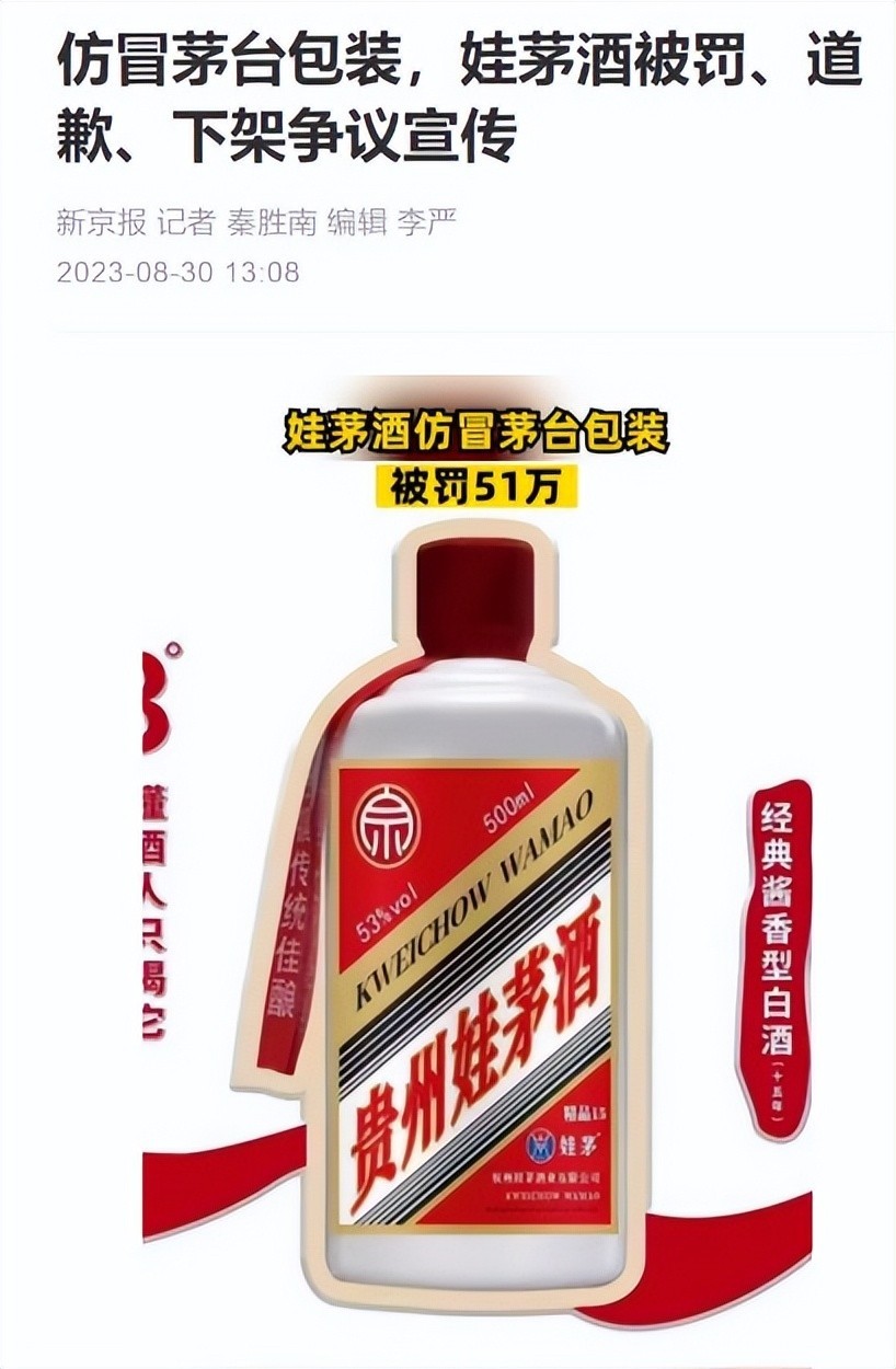 早在多年前,宗泽后就曾因仿制茅台酒推出“娃茅酒”被市场监管部门查处,最终被罚款51万元。如今旧业重操,显然已不顾脸面与声誉。