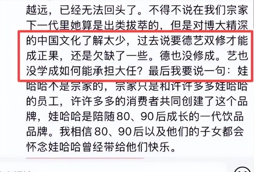 然而值得注意的是,宗馥莉始终未曾正面回应这些言论,而所谓的受害者——她的姑姑和小叔,也并未在此时发声佐证。